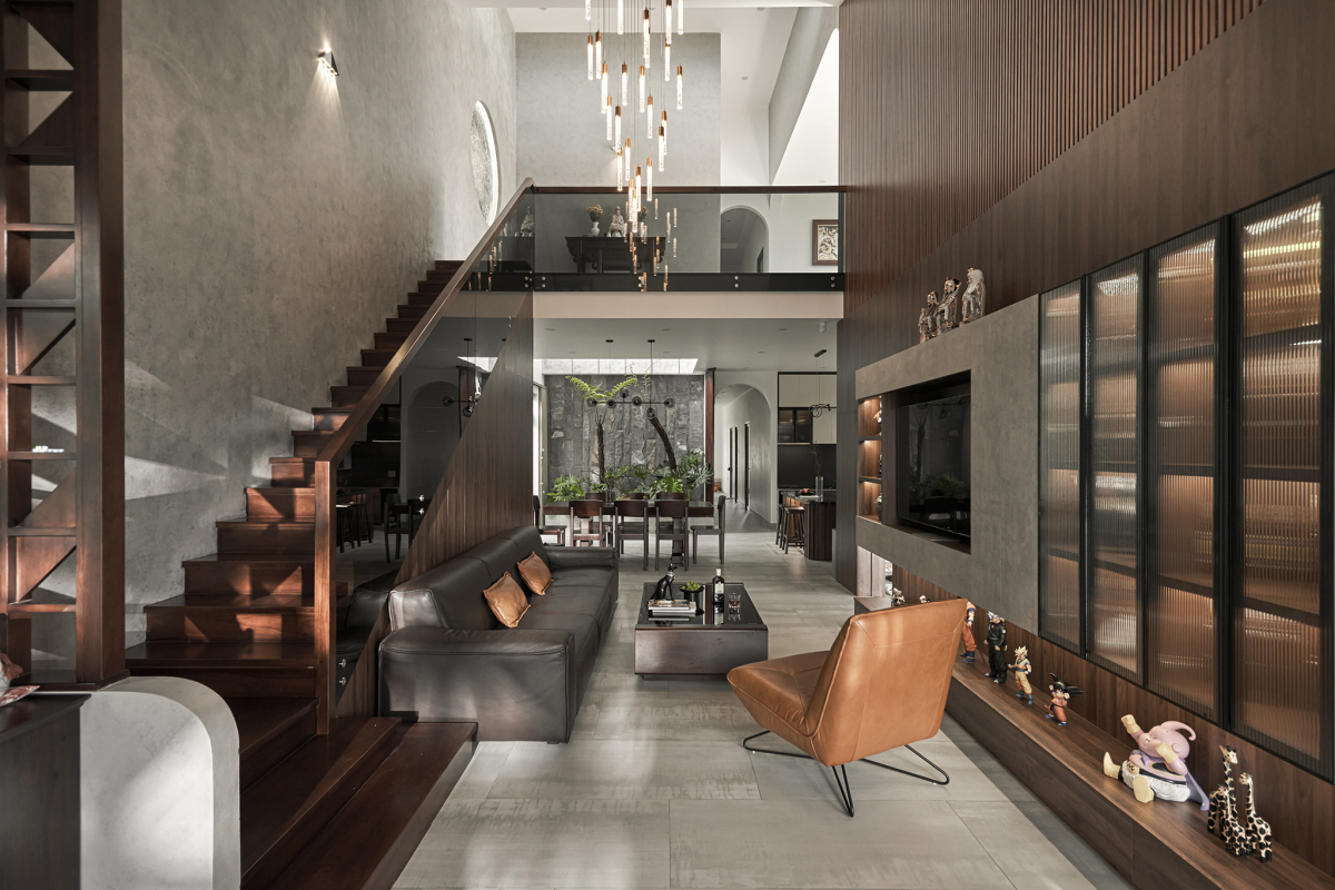 Nội thất được bố trí không gian mở, chú trọng cách sử dụng ánh sáng tự nhiên từ những khoảng giếng trời và cửa sổ lớn.