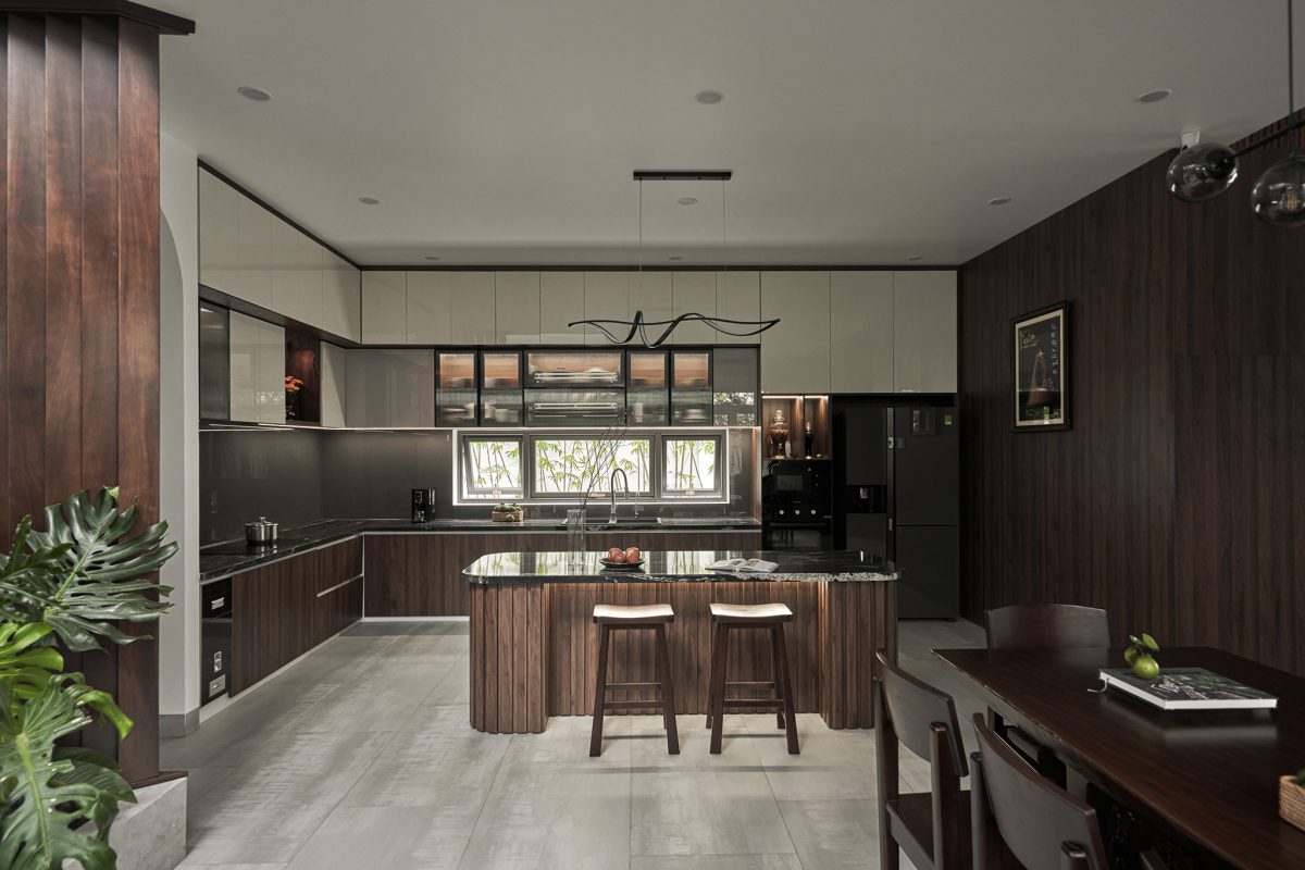 Phòng khách liên thông với bếp – trung tâm của ngôi nhà, không chỉ tạo sự thuận tiện trong sinh hoạt hàng ngày mà còn giúp các thành viên trong gia đình kết nối với nhau dễ dàng hơn